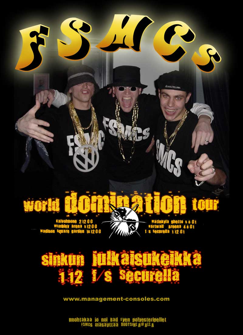 year 2000: Tiukkaa riimii quick linx: [ MP3 ] - [ Lyrics ] - [ Live photos ] - [ Desktop wallpaper (1024x768) ] year 2001: Ruotsinlaivalla quick linx: [ MP3 ] - [ Lyrics ] - [ Live photos ] - [ Tour poster ] - [ Studio photos ] May 2002: Sama Kaveri (T3K) quick linx: [ MP3 ] - [ Lyrics ] - [ Live photos ] November 2002: Bileiden pelastajat quick linx: [ MP3 ] - [ Lyrics ] - [ Tour poster ] - [ Studio photos ] - [ Live photos ]